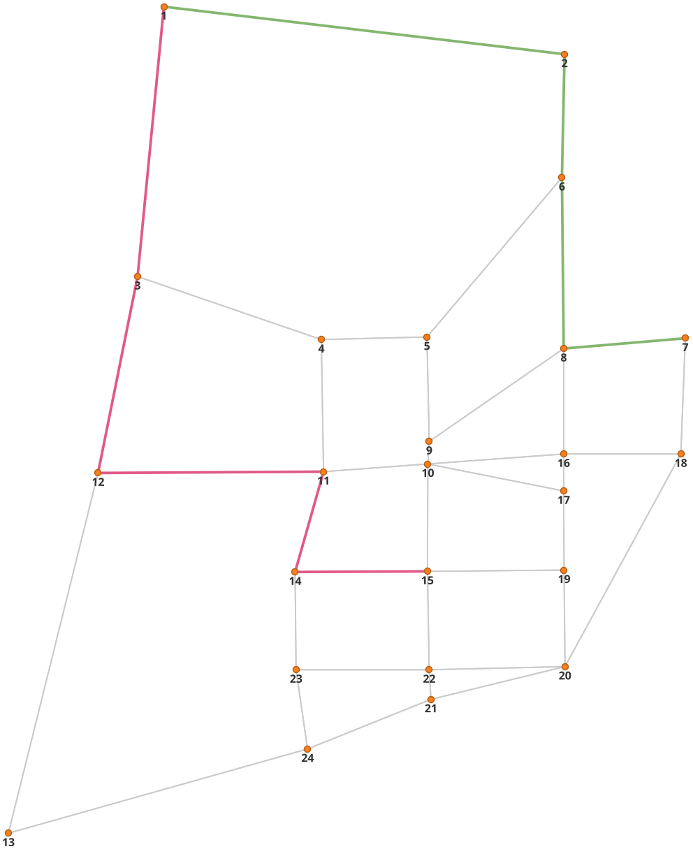 If we select that paths need to be in a separate layer, then every time you compute a path, a new layer with a copy of the links in that path will be created and formatted in a noticeable way. You can also select to have links selected in the layer, but only one path can be shown at time if you do so.