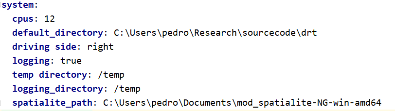 The system section of the parameters file holds information on things like the number of threads used in multi-threaded processes, logging and temp folders and whether we should be saving information to a log file at all, as exemplified below.