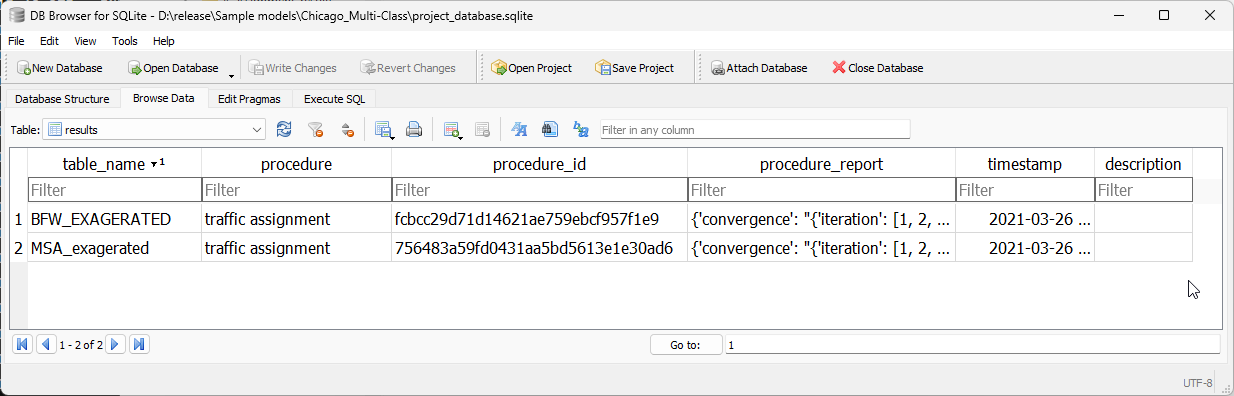 The results table exists to hold the metadata for the results stored in the results_database.sqlite in the same folder as the model database. In that, the table_name field is unique and must match exactly the table name in the results_database.sqlite.