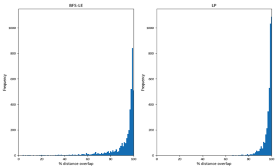 In an experiment with nearly 9,000 observed vehicle GPS routes covering a large Australian State, we found that all three algorithms (LP, BFS-LE, and BFS-LE+LP) had excellent performance in reproducing the observed routes. However, the computational overhead of BFS-LE is substantial enough to recommend always verifying if LP is fit-for-purpose.