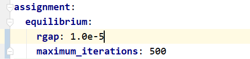 The assignment section of the parameter file is the smallest one, and it contains only the convergence criteria for assignment in terms of the maximum number of iterations and target Relative Gap.